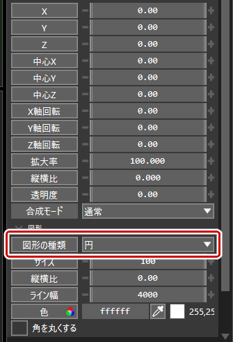 AviUtl2で図形の挿入・使い方について説明しています。一見すると使い道がなさそうな図形ですが