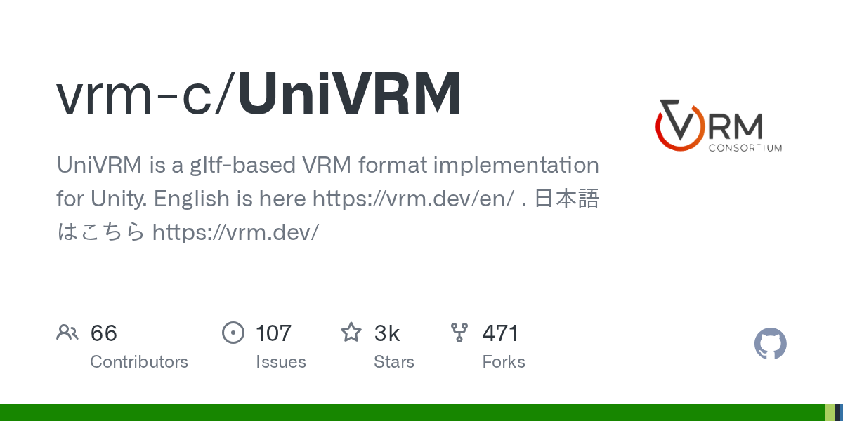 この記事編集時点での最新バージョンはv0.122.0_326。UnityEditerのバージョンが「2021.3 LTS」以上にて動作する。それ以前のEditerバージョンの場合はアップデートをするか、v0.111.0以下のUniVRMを使う(この場合VRM1.0は扱えない)。